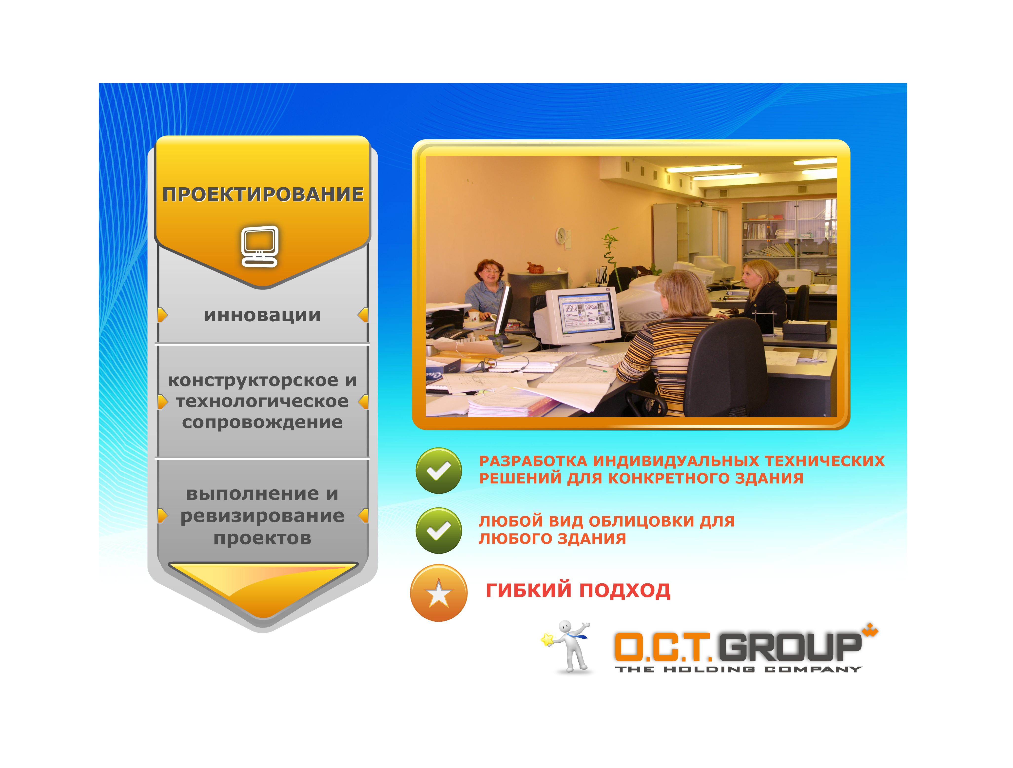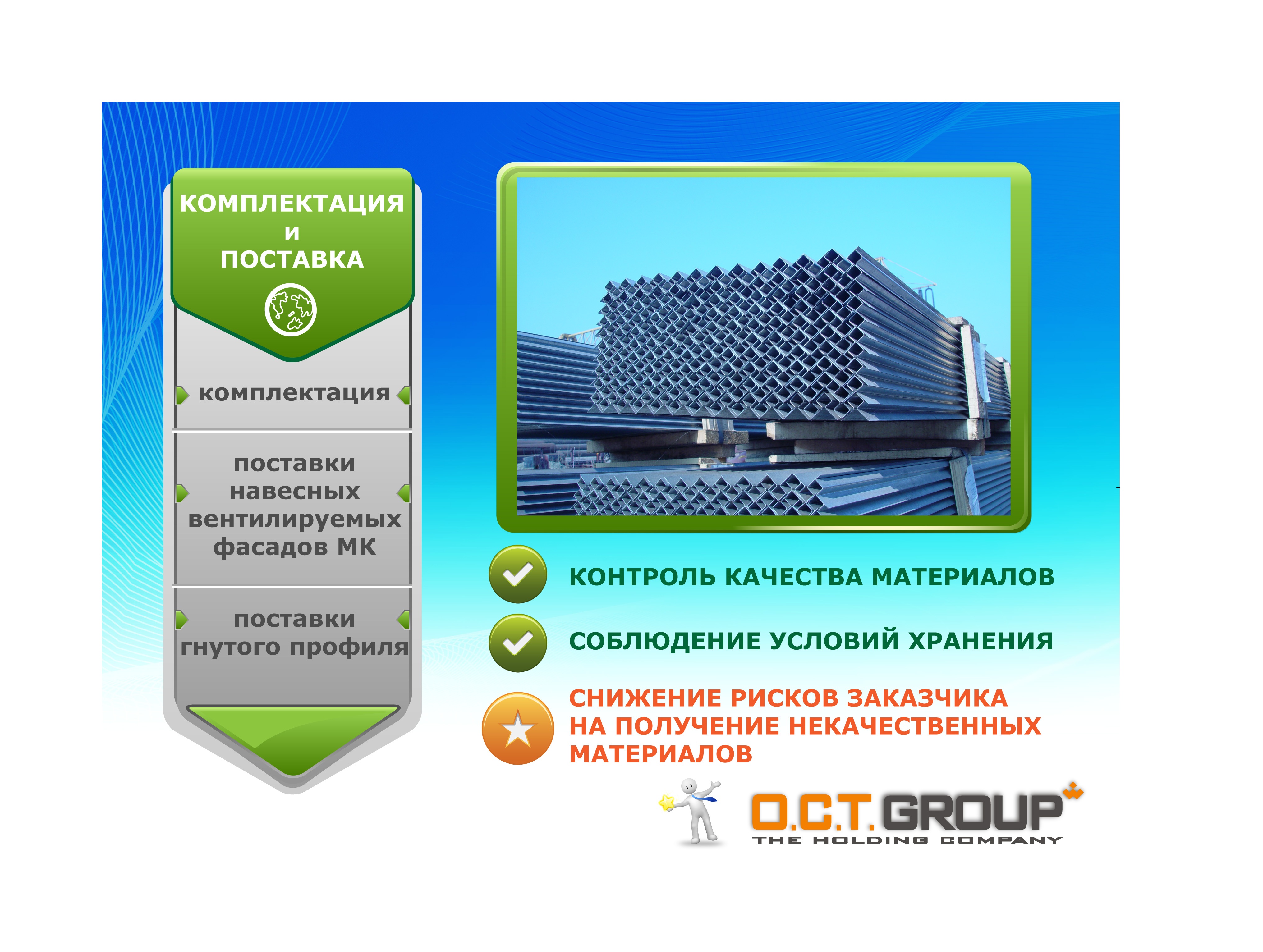 Компания ООО «Группа О.С.Т.» динамично развивается. Предоставляет сервис высокого качества, значительное сокращение сроков от формирования заказа до поставки готовой продукции. Полный комплекс работ от проектирования и производства элементов конструкции навесных фасадных вентилируемых систем до монтажа и шеф-монтажа фасада, а также поставки комплектующих навесных фасадных систем.
