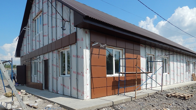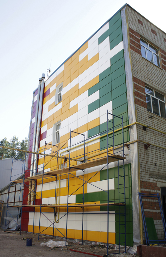в сочетании с другими облиц. материалами